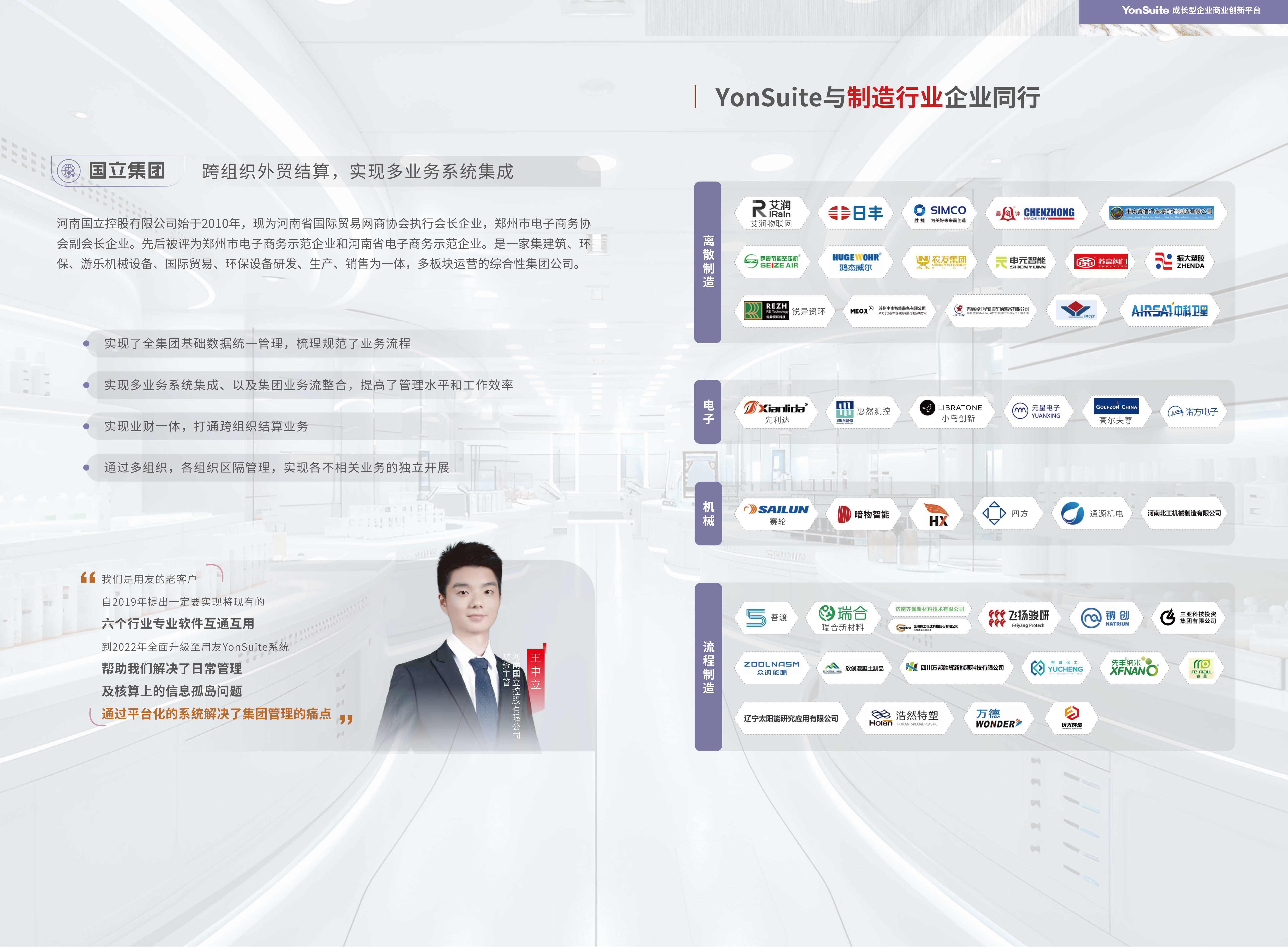 已有超過千家制造企業(yè)通過YonSuite實(shí)現(xiàn)數(shù)字化轉(zhuǎn)型。某汽車零部件企業(yè)通過部署YonSuite,實(shí)現(xiàn)訂單交付周期縮短35%,庫(kù)存周轉(zhuǎn)率提升28%;某電子設(shè)備制造商借助YonSuite的智能質(zhì)量管理系統(tǒng),將產(chǎn)品不良率降低了42%。