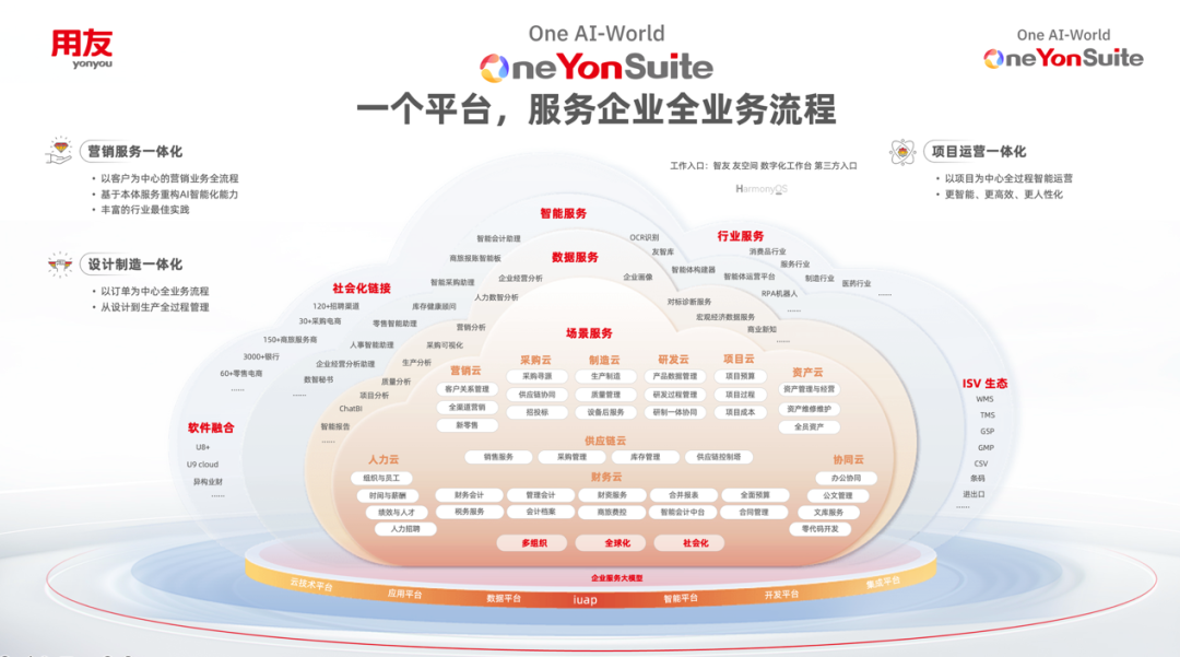 這正是用友始終堅(jiān)持 “One YonSuite”一體化的核心原因。YonSuite實(shí)現(xiàn)了企業(yè)多業(yè)務(wù)領(lǐng)域的一體化閉環(huán)。在這個(gè)統(tǒng)一平臺(tái)上,數(shù)據(jù)原生打通,語義層天然對(duì)齊,無需復(fù)雜的外部接口開發(fā),AI智能體就能以全局視角進(jìn)行跨部門資源調(diào)度和長(zhǎng)鏈條任務(wù)推理。