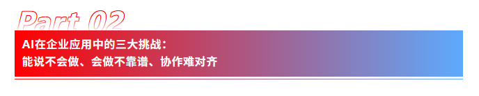 但必須清醒地認(rèn)識(shí)到,C端與B端(企業(yè)端)的應(yīng)用要求截然不同。C端應(yīng)用容錯(cuò)率較高,而一旦進(jìn)入企業(yè)服務(wù)場(chǎng)景,問題的性質(zhì)就發(fā)生了根本改變。在企業(yè)中,財(cái)務(wù)賬目差一分錢都不行,生產(chǎn)決策錯(cuò)一步就可能造成嚴(yán)重后果。正因如此,企業(yè)應(yīng)用AI的核心命題,從來不是“能不能用”,而是誰能用得更安全、更可控、更有規(guī)則、更有邊界。