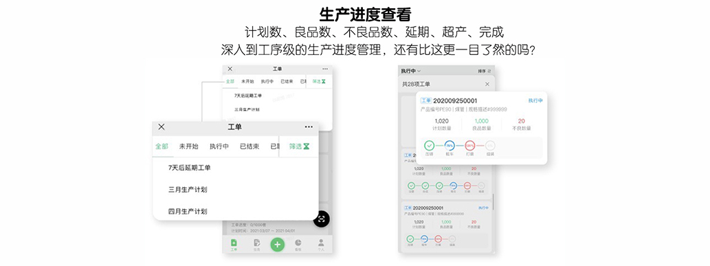 生產(chǎn)進度實時可查,異常信息實 時記錄,及時發(fā)現(xiàn)風(fēng)險,減少浪 費快速分配生產(chǎn)任務(wù),規(guī)范化生產(chǎn) 作業(yè),防呆防錯,減少生產(chǎn)等待 時間