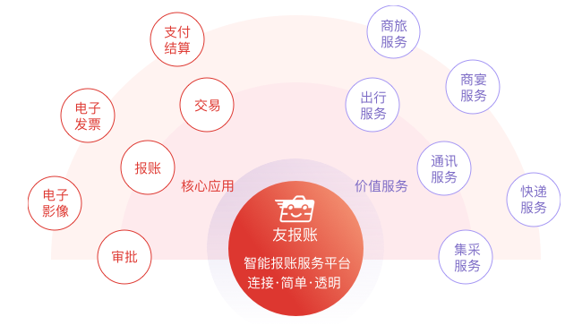 友報(bào)賬為企業(yè)提供專業(yè)化的報(bào)賬服務(wù)和連接服務(wù),創(chuàng)造企業(yè)財(cái)務(wù)新價(jià)值。作為企業(yè)財(cái)務(wù)數(shù)據(jù)采集終端,面向企業(yè)全員應(yīng)用,并整合社會(huì)資源,為企業(yè)員工提供端到端的一站式互聯(lián)網(wǎng)服務(wù),打通從申請(qǐng)、審批、交易、報(bào)賬、支付、核算、報(bào)告所有環(huán)節(jié),實(shí)現(xiàn)數(shù)據(jù)不落地,全線上應(yīng)用,全程管控