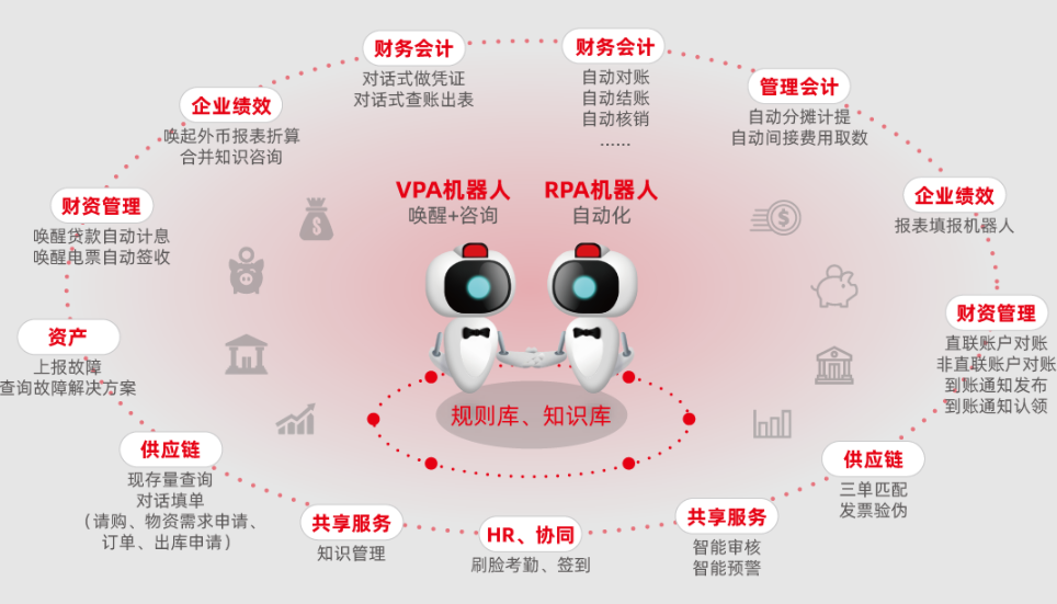 用友NC Cloud 應(yīng)用人工智能技術(shù)(例如:交互式語音、LBS、OCR技術(shù)),結(jié)合實(shí)際業(yè)務(wù)場景,全新設(shè)計(jì)VPA工作助手(人機(jī)交互、智能問答......)、RPA流程機(jī)器人(自動對賬、結(jié)賬、核銷、發(fā)票驗(yàn)偽、三單匹配、報(bào)表填報(bào)......),用AI技術(shù)引領(lǐng)智能應(yīng)用新方向,重塑用戶新體驗(yàn)。